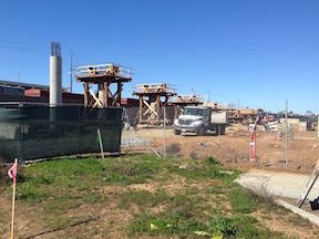 Work has started on the bridge that will connect Curtis Village to Sacramento City College over the Union Pacific railroad right-of-way. The bridge supports on the Curtis Village side have been installed. I did not see any signs of work yet on the section over the tracks nor on the west side at the light rail station and campus. The bridge will be usable by bicyclists, though I am not sure whether the design really addresses bicyclists. The paucity of east-west routes over the rail and light rail corridor means that both bicyclists and walkers have rather unpleasant routes to choose from, so this will be a great improvement. The Sutterville Road bridge, though it has sidewalks and even a narrow bike lane, is a very unpleasant place to be due to the high speed traffic and poor visibility.
