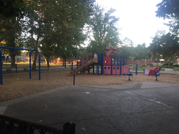 Winn Park, a block-square park between P & Q, and 27th & 28th, seems dead to me. It doesn’t matter what time of day I see the park, it is almost always empty, sometimes with some homeless folks hanging out, and more rarely, a family with kids on the playground equipment. Other parks seem lively much of the day. Why are the parks so different? I have been visiting all the parks in Sacramento central city to take photos and see if I can make sense of their characteristics.