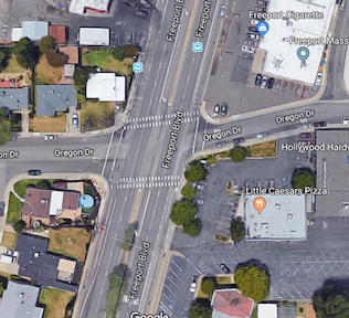 This is the research that Ryan Moore was referring to in the crosswalk removal meeting when he said that the city was following federal guidelines that required them to remove the crosswalk at Freeport and Oregon, though he did not call out Zegeer by name. Twenty-three crosswalks were removed in total, though we still don’t know where all of them are, and the city won’t provide that information.