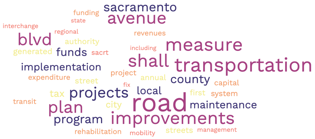 Measure A 2022 Measure 2022: word cloud 2022/03/22 Dan AllisonLeave a comment Just for laughs, a word cloud generated from the Measure 2022 Exhibit A: Transportation Expenditure Plan. Share this: Click to share on X (Opens in new window) X More Click to share on Facebook (Opens in new window) Facebook Click to share on LinkedIn (Opens in new window) LinkedIn Like Loading... Related