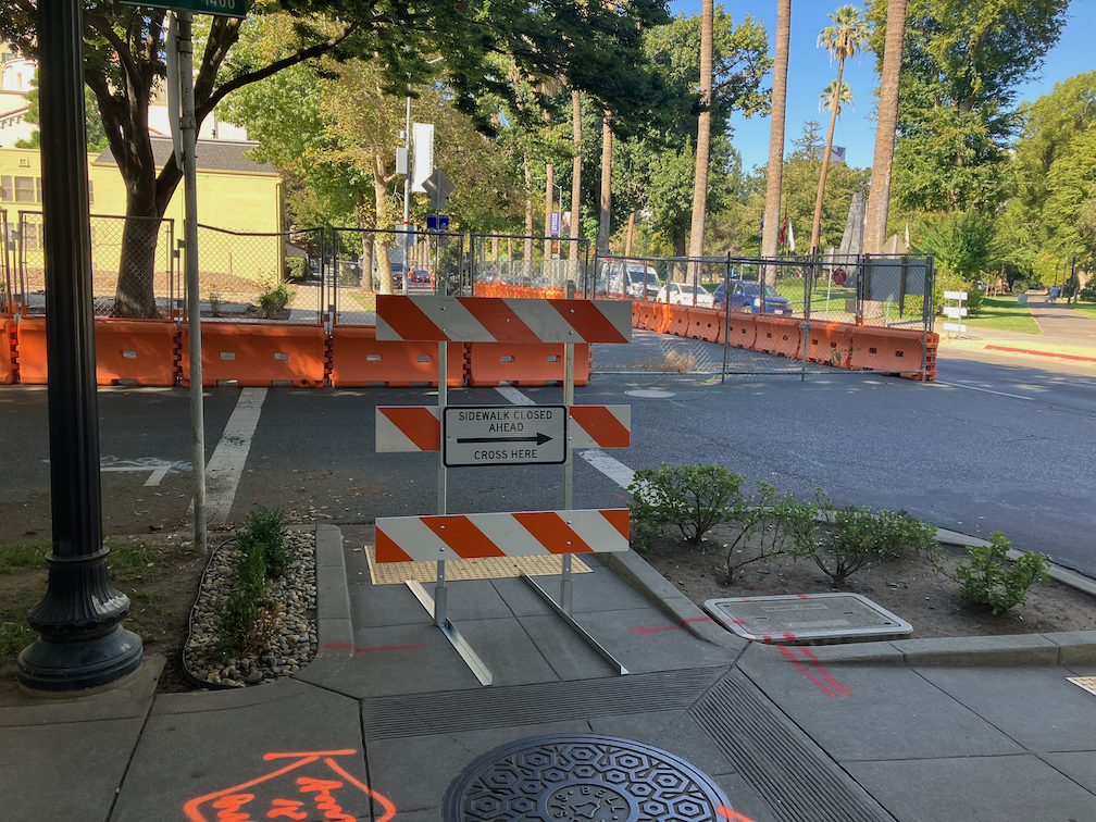 As is usual for a project permitted by the City of Sacramento, either the traffic control plan was written to allow violation of ADA, or the company has not followed the plan. Or both.