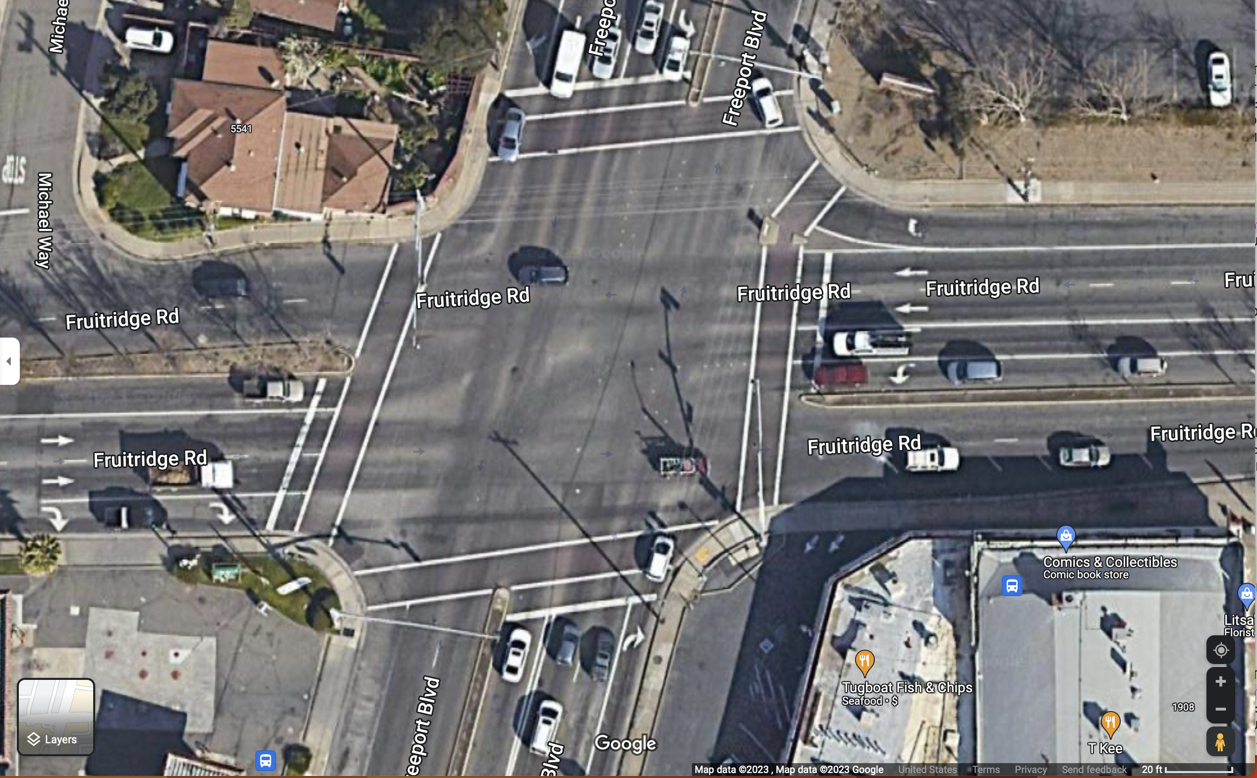 First, what Freeport – Sutterville W intersection looks like today.
