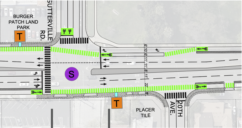 Notes: I am calling the section of Sutterville Rd to the east of Freeport ‘Sutterville Rd E’ and the section to the west of Freeport ‘Sutterville Rd W’, but these names do not reflect street addresses, since this is all East Sutterville Rd. This post introduces the idea of protected intersections along Freeport, which apparently were not considered by the city in their planning process. For more information on this design, see protected intersections and Davis protected intersection.