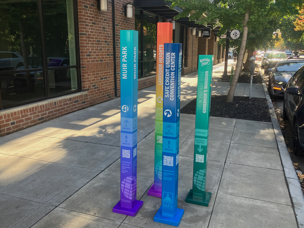 Midtown Association wayfinding signs at SAFE Convention Center and Performing Arts District