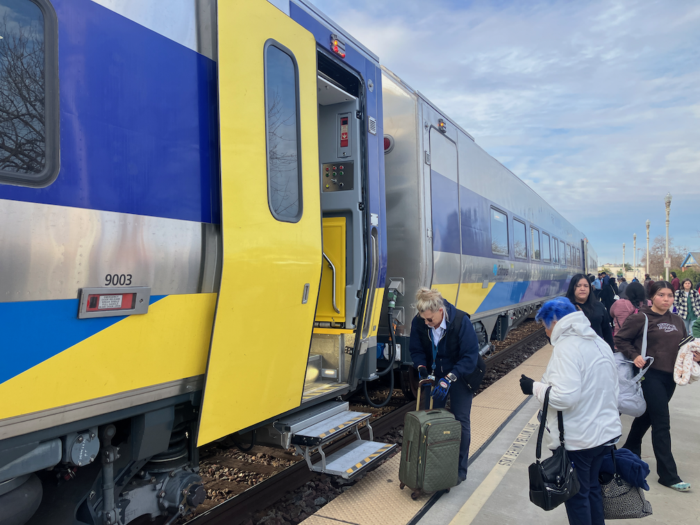 Correction: There is one trainset, used both directions on 710/719. Rumor is a second trainset will be added soon, for 702/703. The 702/703 is the train that serves Sacramento directly without the bus to Stockton. A rumor from the Cafe Car attendant is that the trainsets will be modified to have a cafe car of some sort, in response to complaints such as from Streetsblog above, about the lack of food service on the new trainsets. It isn’t clear to me whether the San Joaquin JPA or Caltrans Division of Rail is more in charge of train configuration.