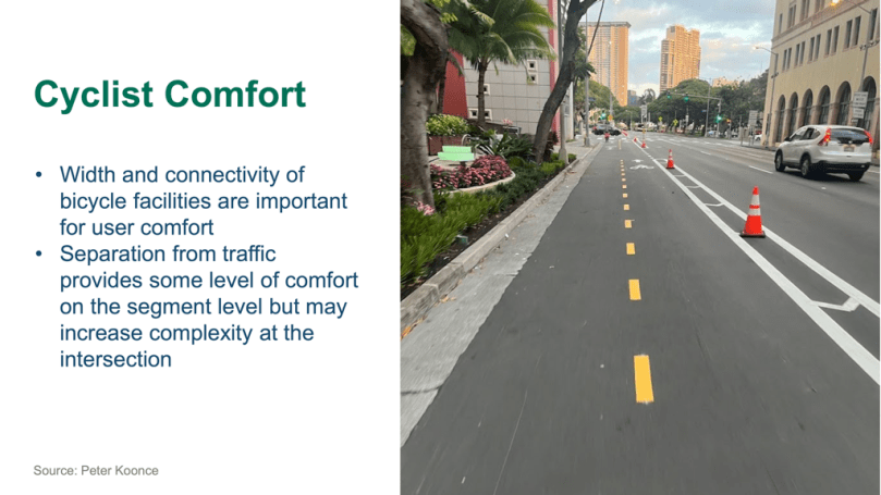 “M Street from Sac State to Midtown through East Sacramento is known to be an all-ages and abilities bikeway connecting schools and health care and retail, and that is shown as a high-stress facility,” she noted. “When known low-stress facilities like this are showing up as high stress, that concerns me.”