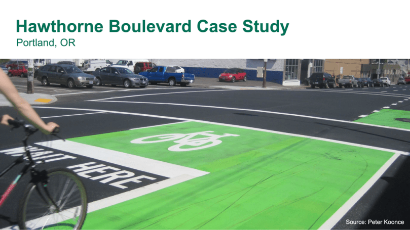 • 21st Street northbound: starts at W Street with an awkward transition from east side bike lane to west side separated bikeway; ends at H Street with a semi-protected bike signal