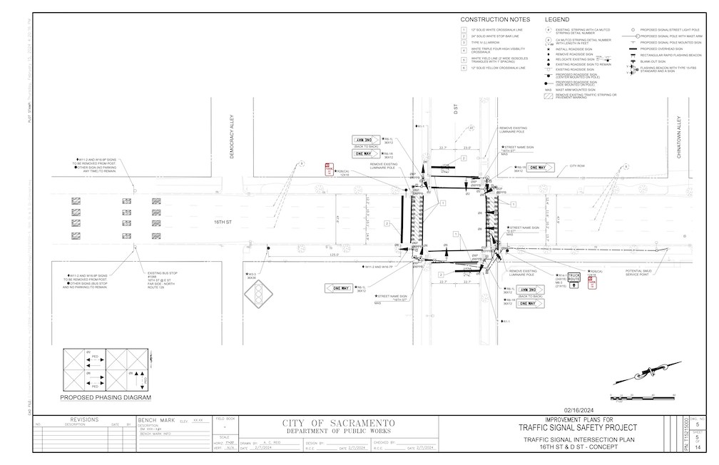 - 16th & D: traffic on 16th St needs to be calmed, signal will probably not shorten wait time for crossing