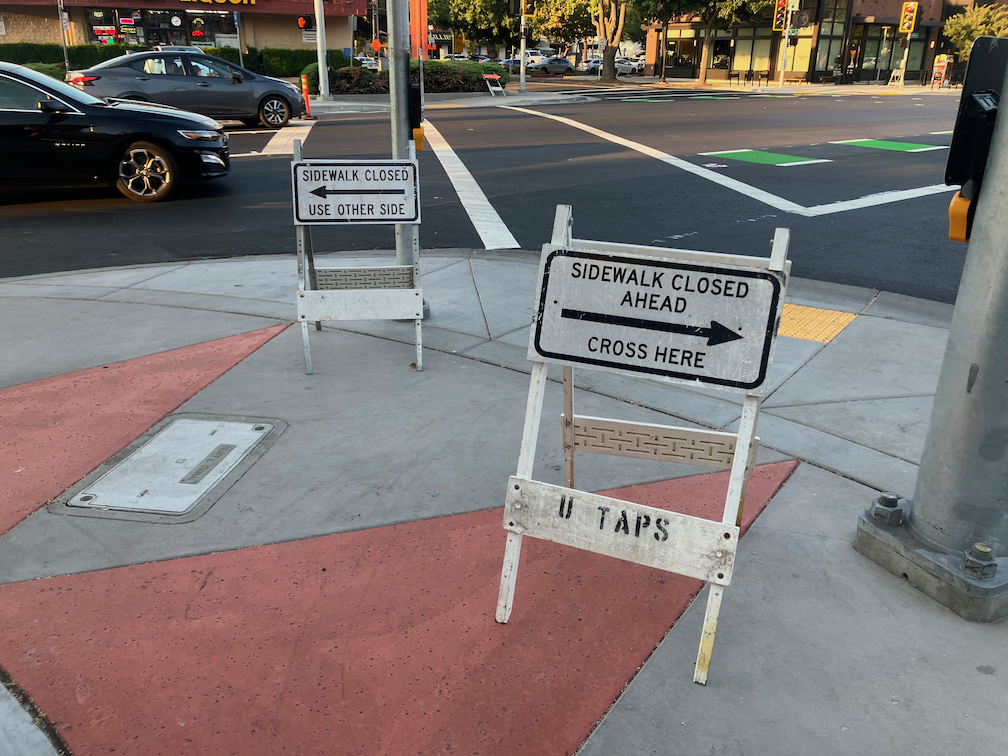 - The pedestrian beg button should be removed from the bike lane, and automatic detection of bicyclists installed. The city knows how to do this, and has done it at a few other intersections, but chose not to here.