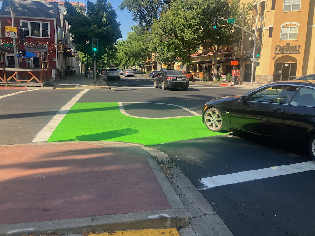 16th St & P St, Sacramento, high speed turn across painted turn wedge