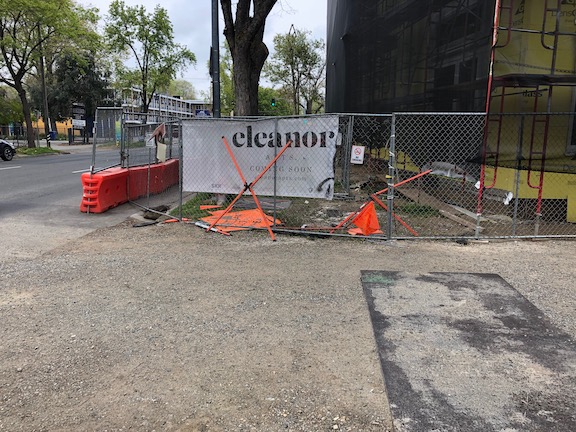 An new housing development at 16th Street and E Street (remember, I’m not against housing developments) has significant problems. At the southeast corner of 16th and E, the corner has been completely blocked by construction barriers and fencing, so there is no safe wait space for people using the crosswalk, and therefore both crosswalks should be closed. There should be a barrier and signing on the east side crosswalk over E Street, and there should be a barrier and signing for the south side crosswalk over 16th Street. Neither are there.