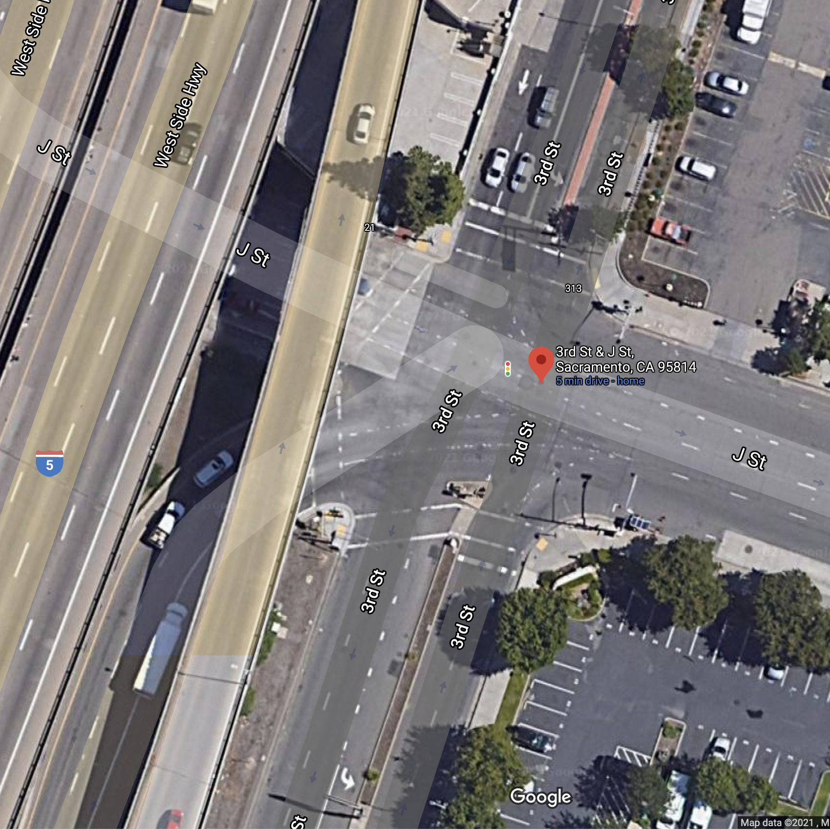 This has always been a problematic intersection. Two freeway off-ramps, coming from I-5 southbound and I-5 northbound, bring high speed drivers onto J Street without causing them to slow much from freeway speeds unless the lights happen to be red. 3rd Street is much calmers but has its own issues.