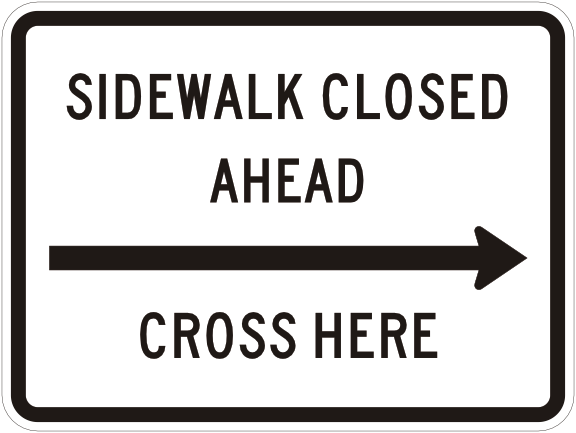 Unless the closest safe crossing is clearly evident from the point of closure, wayfinding signs will be included specifying the shortest distance and safest crossing.