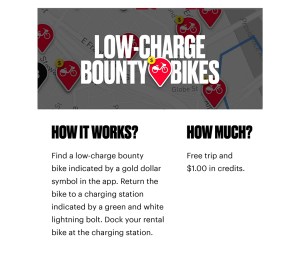 The credit for returning a low battery $ bike to a drop zone is now $1.00, up from 50 cents.