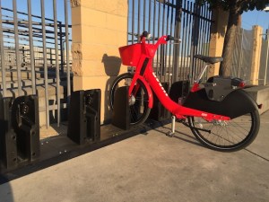 Traffic laws: I see JUMP riders not stopping at stop signs, and occasionally not at signals. But I don’t perceive that there is any difference between JUMP riders and other riders. And as always, I must point out that motor vehicle drivers run stop signs at a higher rate than bicyclists, though they also run red lights at a lower rate. Drivers have a perception that bicyclists always violate the law, and so they see what they expect to see, but they have a perception that drivers mostly follow the law (which is far, far from the truth), so they don’t see driver violations. Of course being on a bright red bike makes one more prominent.
