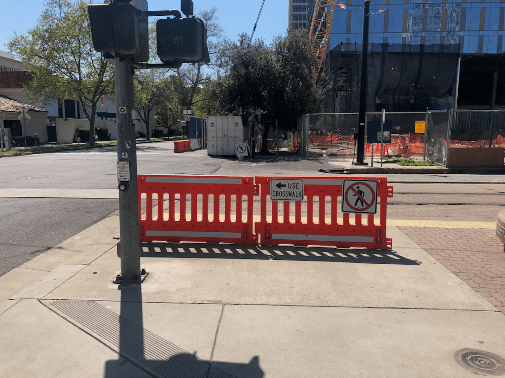 - Implementing construction zone requirements that accommodate walkers and bicyclists. The current city policy is to provide safe bypasses only if it does not in any way inconvenience drivers. The public has asked that a policy be developed along the lines of the Oakland construction policy, but the city has stonewalled against that.