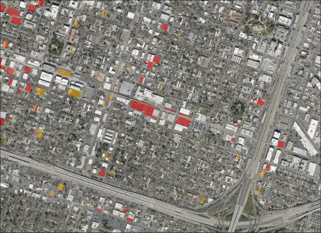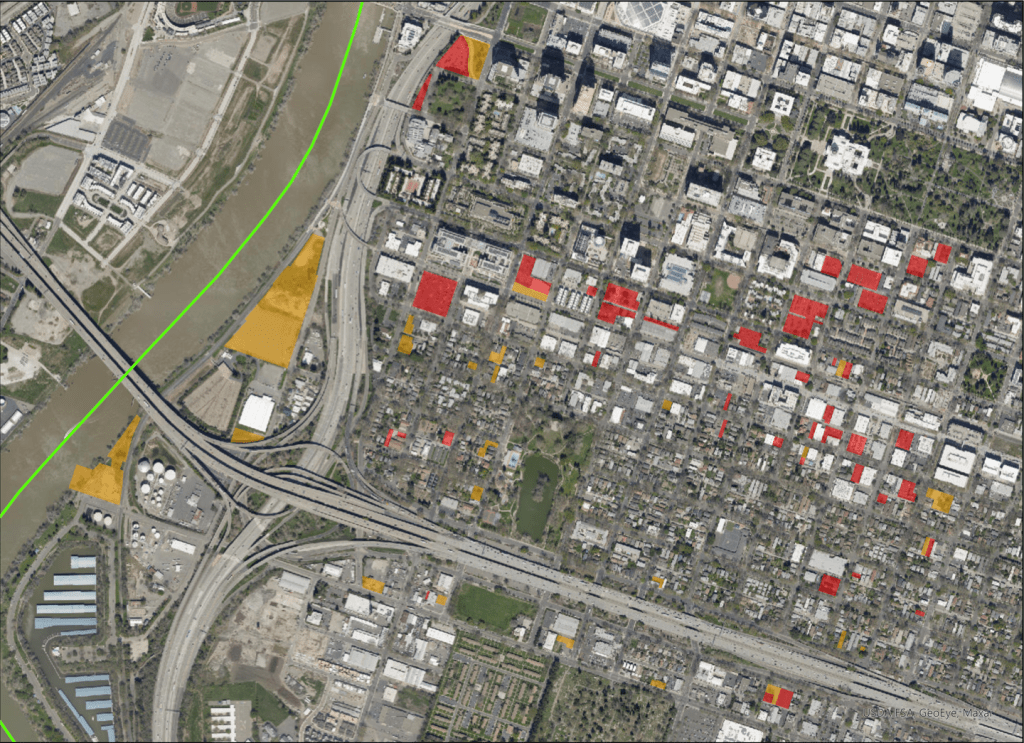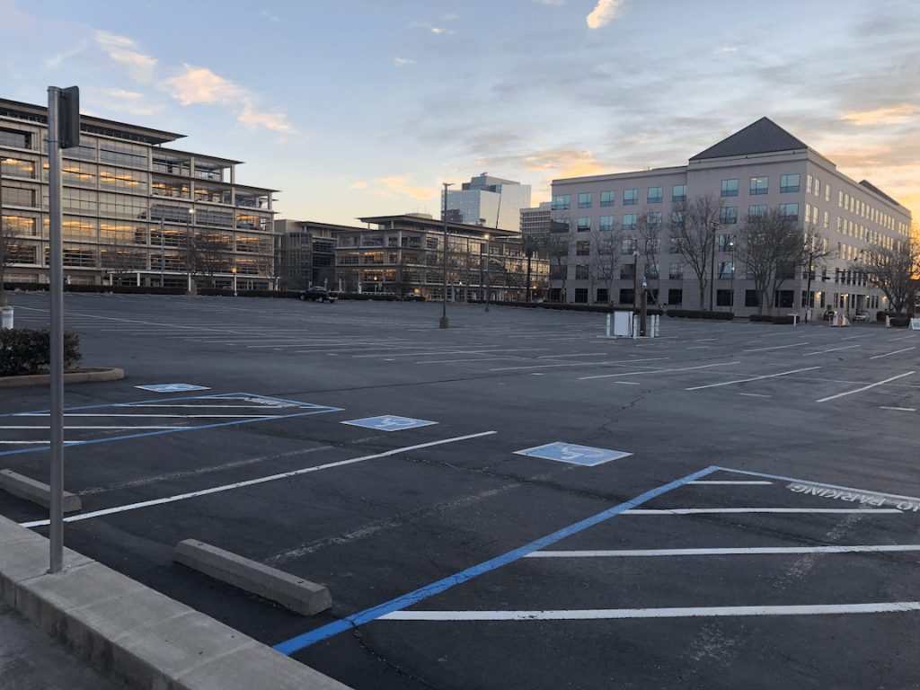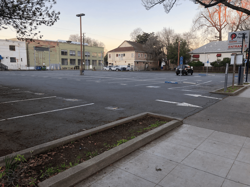 The graphic is below, but more useful will be the ArcGIS Online WebApp Sacramento parking & empty. Red is surface parking, orange is empty parcels.