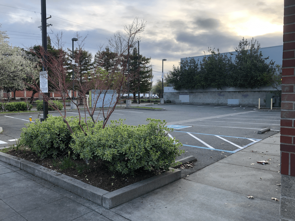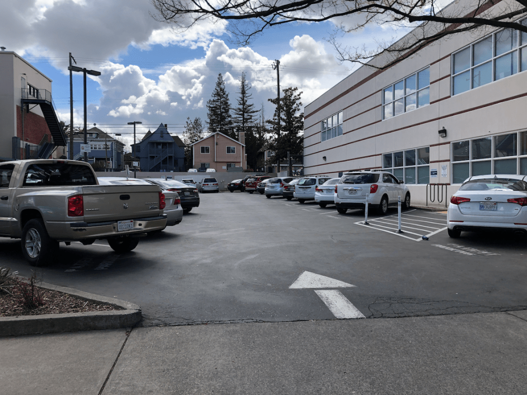 2. Provides places for customers to park who so far have not shifted to walking and bicycling, or who are in that rare situation of needing a car for disability reasons or items being picked up/dropped off.