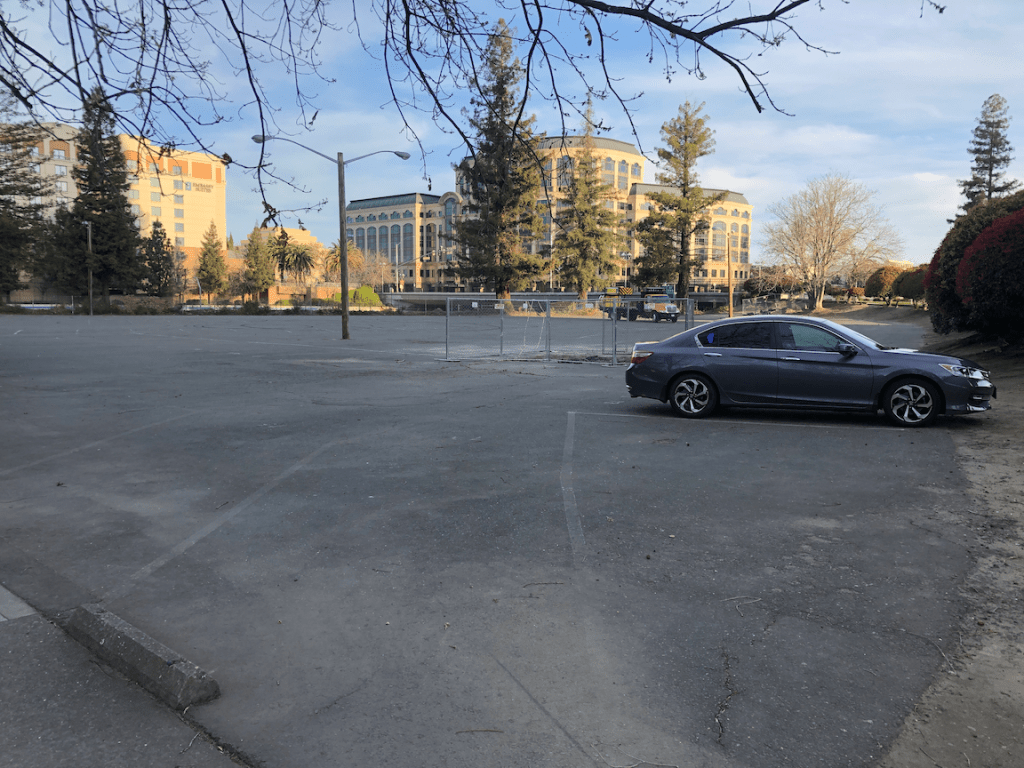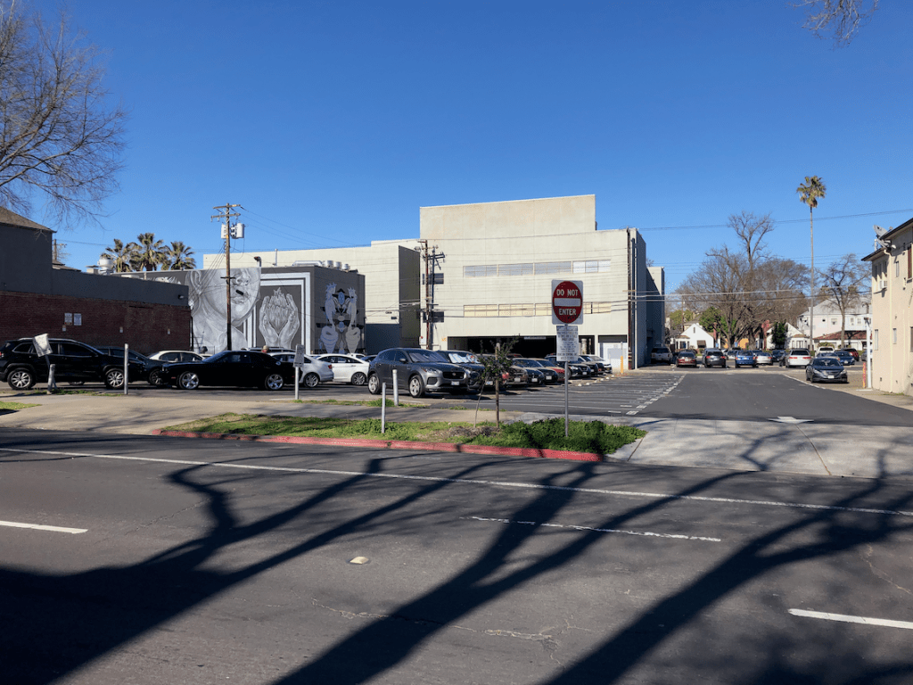 So why is this parking here at all? No reason whatsoever. On the north side of this block is a County of Sacramento parking garage. There is even a pedestrian bridge between the parking garage and the Sacramento County administrative building on the south side of H Street, as seen in the photo.