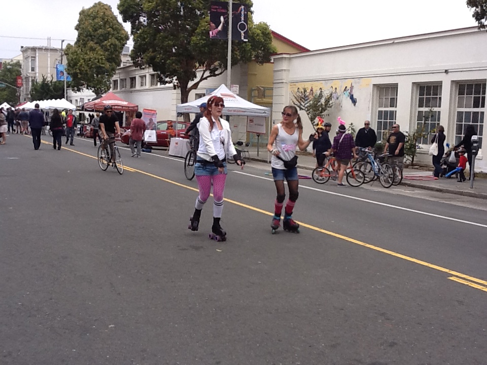 Evening, I went to a contra dance in Oakland, Circle Left. Short walk to BART, BART from Powell Station to 19th St Oakland, walk to the dance center. I didn’t last the entire dance, because a hot day in the sun and dancing at the festival left me drained. Walk and BART and short walk back to the hostel.