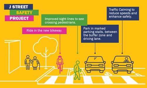 The City of Sacramento is going to use street rehabilitation funds (from SB-1) to create a separated bikeway on J Street between 19th and 30th, starting this summer. The city held a public meeting last night (January 25) to gather public comments on the design elements, which have not been finalized.