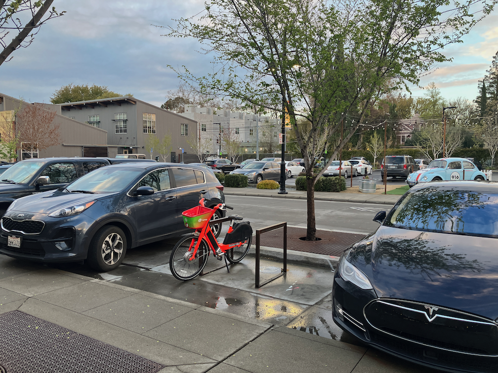 Below is a photo of K Street in midtown Sacramento. The street design, one lane each way, low volume and low speed, temporary curb extensions to calm traffic, painted crosswalks, some on-street parking but reduced to increase walker safety. Of course it could be even better. The land use, a mix of storefront retail and housing, in turn supports good road design. This is a street. This is a place where people want to spend time, and spend money, and feel welcome.