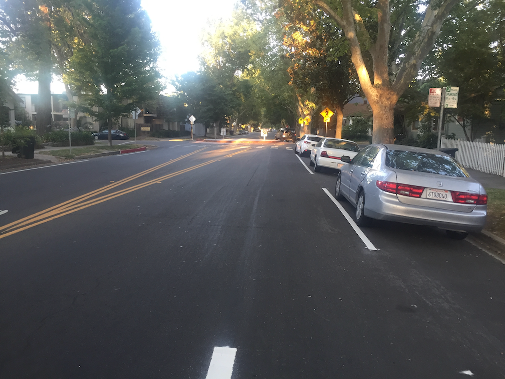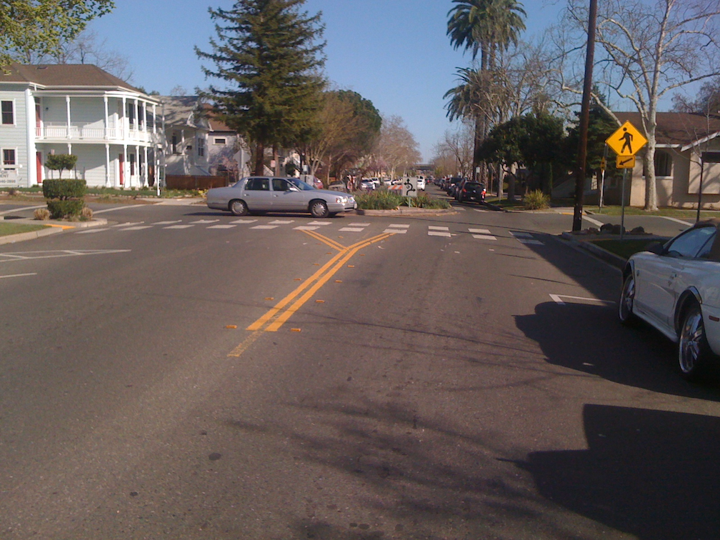 There are four types of traffic calming that have been used in Sacramento central city: median islands, traffic circles, traffic diverters, and speed humps. It was recently said by city staff that only speed humps are a current solution for traffic calming, but I’d really like the city to bring back diverters.