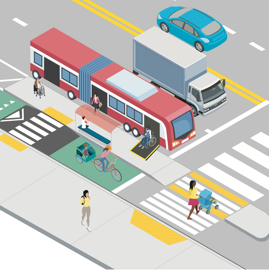 - dedicated bus lanes or bus rapid transit (BRT) design will be implemented on all high ridership bus routes